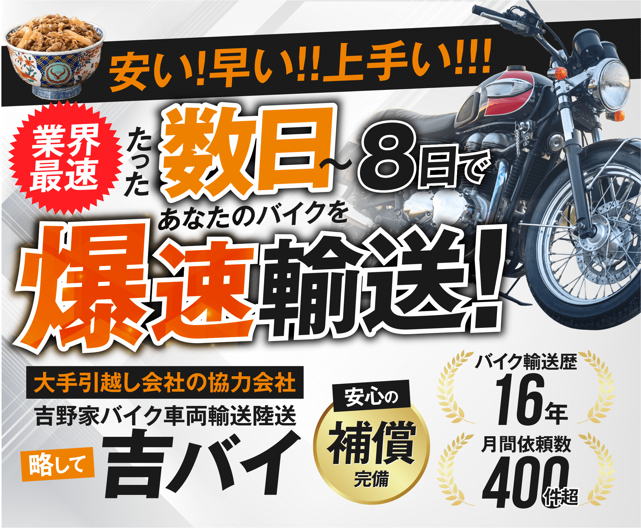 数週間も待たされることなく、短期間でバイクを無事に届けてもらえるかどうかがカギ。
