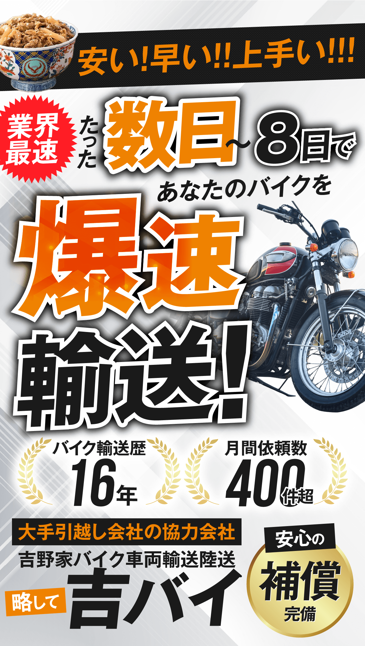 急な引っ越しにも対応してくれたし、バイクをすぐに乗れるのが最高。